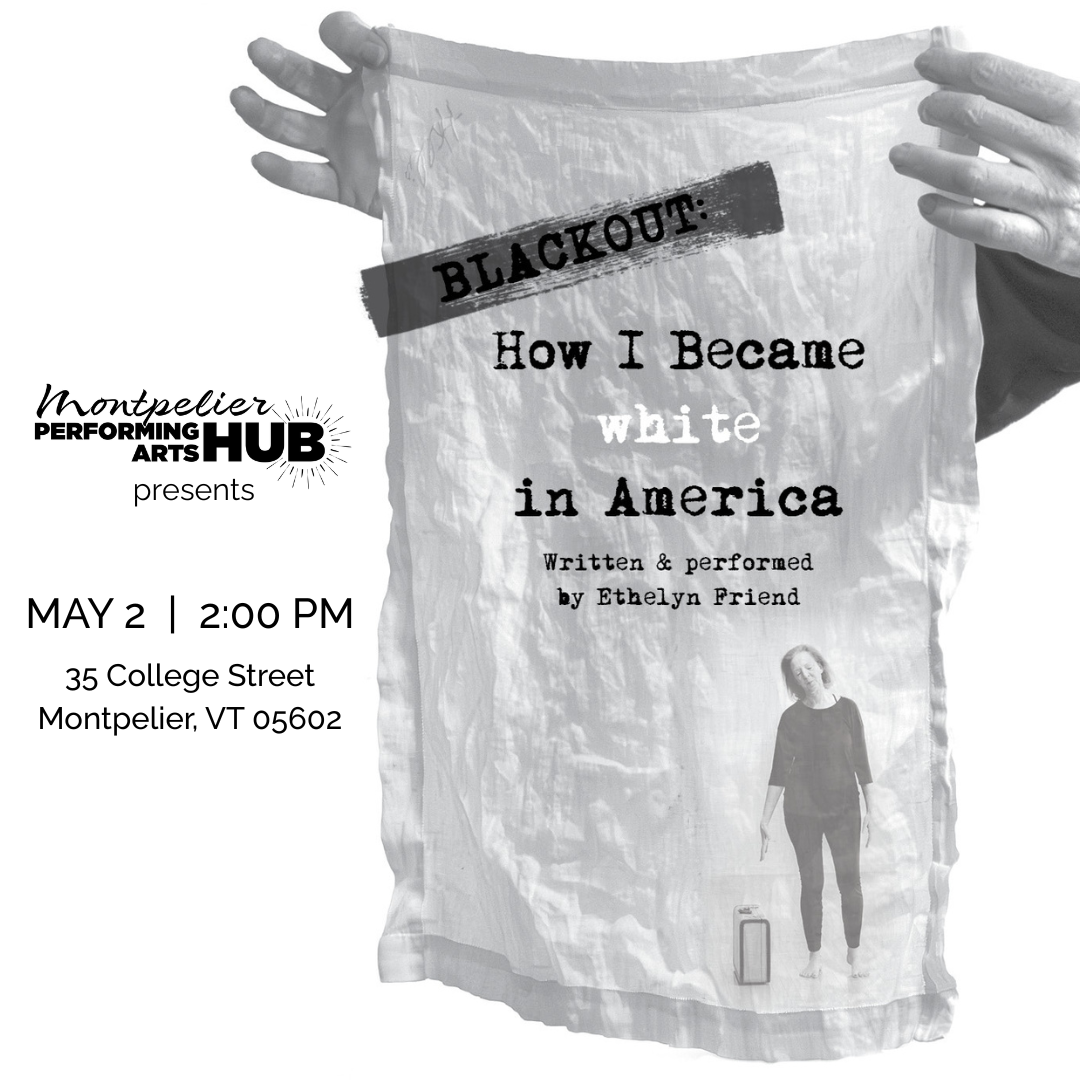 This theatre piece is inspired by the work of Reparative Genealogy and Resmaa Menakem’s Somatic Abolitionism. Since 2018, I’ve been researching my white enslaver forefathers from Georgia and Alabama, online and on the land. BLACKOUT mirrors this process and investigates the morass of white supremacy and privilege in an intimate and concrete way. I stand inside this performance as one drop of specific truth to counter the ocean of attempted erasure. It is obviously problematic for a white person to center, to literally “perform”, their response to their own relationship to the history of enslavement. I’m in grateful debt to the ongoing support of a diverse team of artists, activists and writers who have helped me navigate this quicksand, and consulted with me on many of the details of the script and performance. I am not earning in the context of this performance. Proceeds for all events are funneled to fundraising for local justice organizations, especially those related to Reparations and redistribution of wealth.