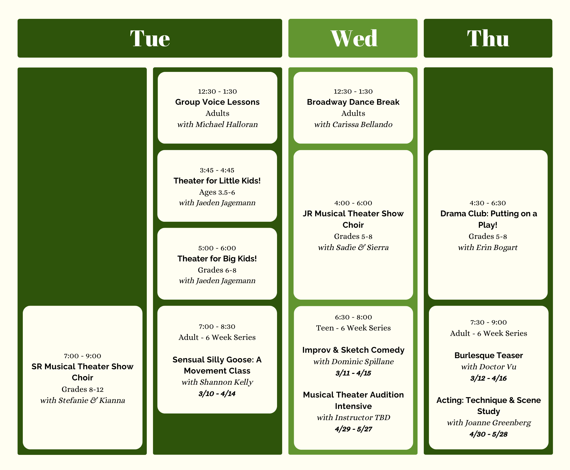 In this five-week intensive, students in grades 8–12 will sharpen their musical-theater audition skills through focused coaching on song cuts, acting choices, and on-camera technique for standout self-tapes. Each 90-minute session blends performance training with practical tools to build confidence, professionalism, and ease in any audition setting. The class culminates in polished self-tape materials and a deeper understanding of how to present their strongest, most authentic work.